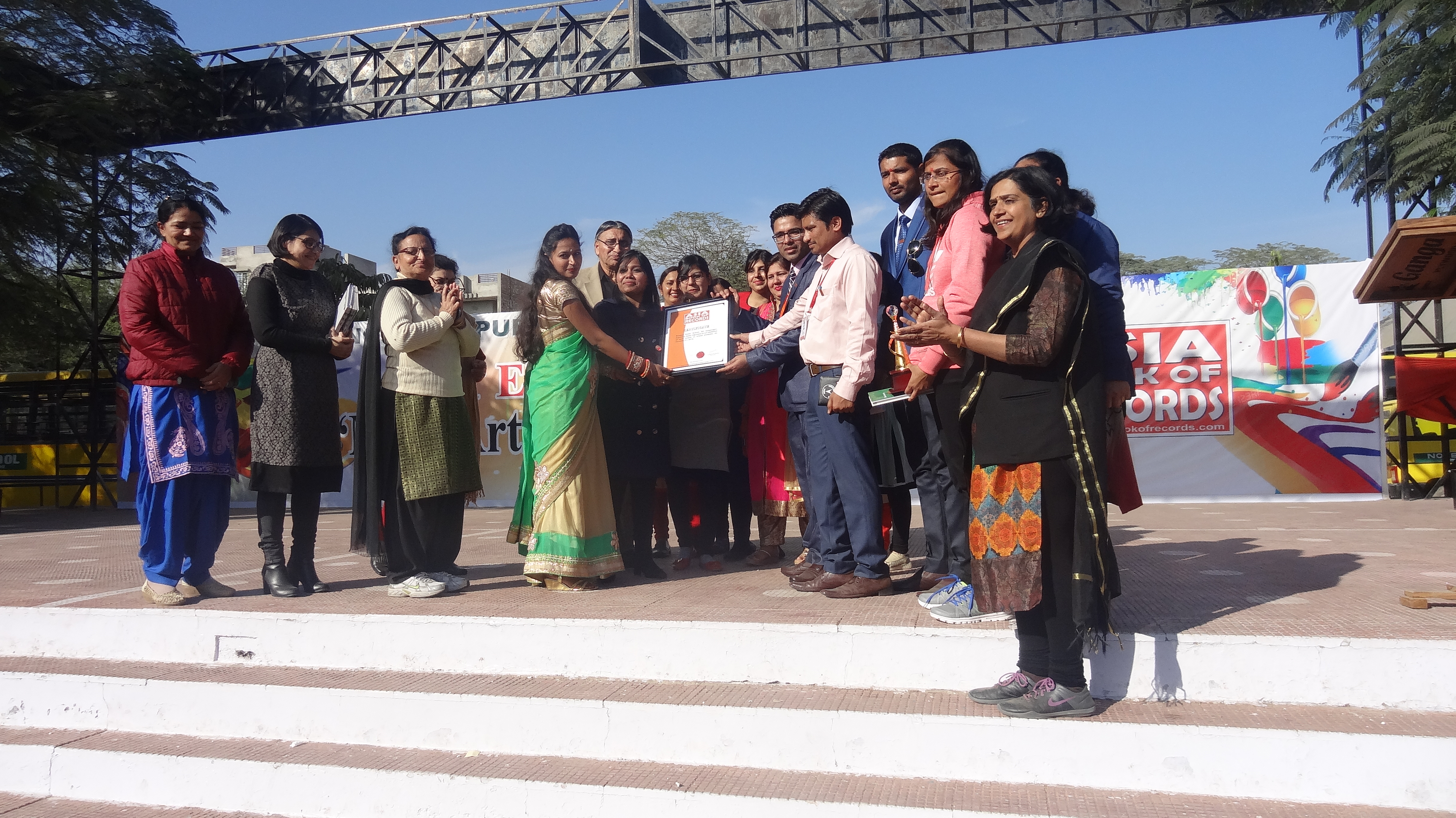 Nosegay Public School, Sriganganagar, Rajasthan, India, organized an art exhibition of most (613) artists and displayed 2433 artwork and paintings, at school premises, on December 21, 2016.
