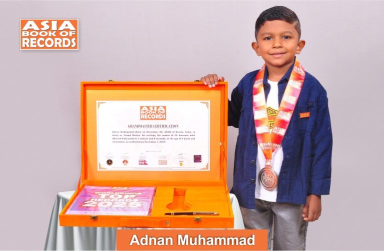 Adnan Muhammad (born on November 20, 2020) of Kerala, India, is titled as ‘Grand Master’ for reciting the names of 54 diseases with affected body parts in 1 minute and 8 seconds, at the age of 4 years and 10 months, as confirmed on November 1, 2025.