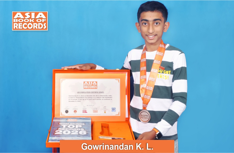 Gowrinandan K. L. (born on December 28, 2011) of Karnataka, India, is titled as ‘Grand Master’ for solving a 2 x 2 Mirror Cube blindfolded in 15 seconds, at the age of 13 years and 9 months, as confirmed on December 31, 2025.