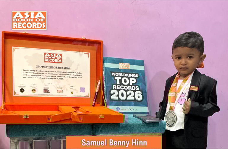 Samuel Benny Hinn (born on October 10, 2023) of Andhra Pradesh, India, is titled as ‘Grand Master’ for standing on a tricycle and balancing himself (without any support) for 4 minutes and 50 seconds, at the age of 2 years and 1 month, as confirmed on November 29, 2025.
