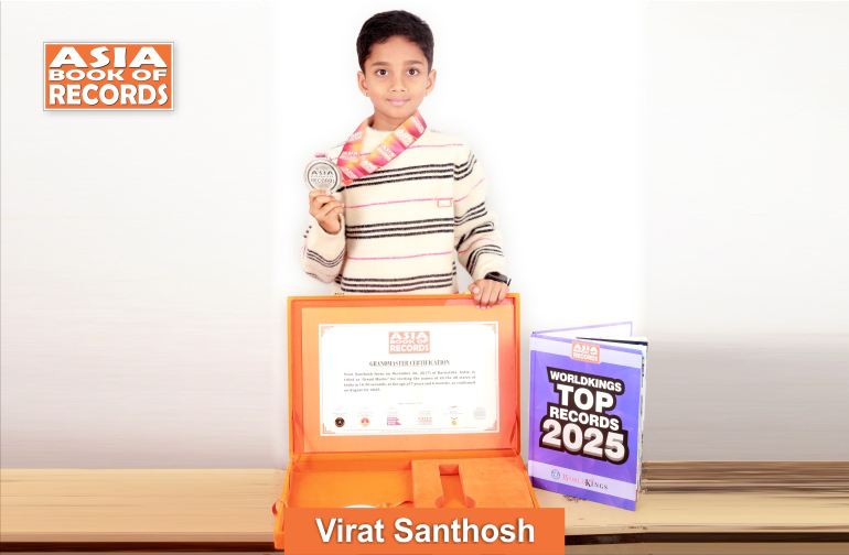Virat Santhosh (born on December 30, 2017) of Karnataka, India, is titled as ‘Grand Master’ for reciting the names of all the 28 states of India in 16.56 seconds, at the age of 7 years and 6 months, as confirmed on August 23, 2025.