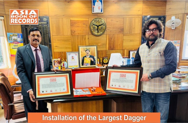 Afshan Raza Khan (Artist) from Rampur, Uttar Pradesh, set a record for the ‘Installation of the Largest Dagger’. In 2022, he, the founder of “Artism Studio13”, created the “World’s Largest Dagger” as a tribute to the iconic “Rampuri Chaaku”. Standing an impressive 20 feet tall, the monumental sculpture has become a landmark known as “Chaaku Chowk”. The objective of this installation was to preserve cultural heritage while pushing the boundaries of creativity and innovation, as confirmed on January 7, 2026.