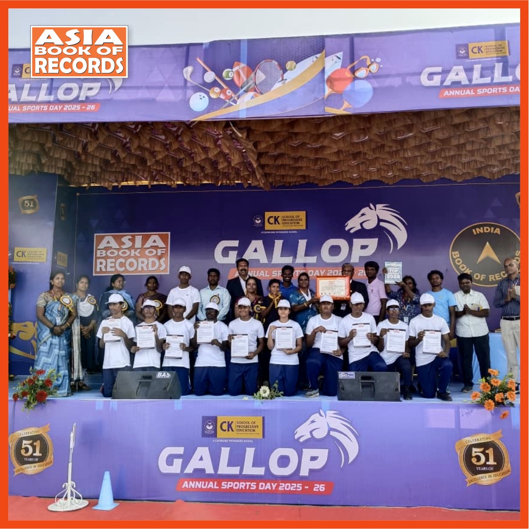 CK School of Progressive Education, Chellankuppam, Cuddalore, Tamil Nadu, India set a record for the ‘Largest Human Formation Representing Positive Human Values’. A total of 851 students completed synchronized formations within 15 minutes and 27 seconds, each sharing a life value learned. The formations—Bow and Arrow, Infinity, Bar Graph, and Book—symbolized focus, continuous learning, progress, and knowledge. This initiative promoted moral education and a values-driven community, as confirmed on January 7, 2026.