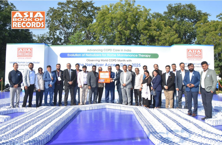 Cipla Pharmaceuticals Ltd. (Respiratory Team) set a record for creating the ‘Largest Human Lung Model Made with Nebulisers During World COPD Month’. The human lung model was formed using 15000 nebulisers (measuring 52 feet x 52 feet). 29427 doctors pledged to raise awareness about Obstructive Airway Diseases (OADs) among patients. Reinforcing its commitment to patient well-being, Cipla announced plans to donate nebulisers to government healthcare institutions supporting the convenience of Home Maintenance Nebulisation for patients, as confirmed on November 14, 2025.