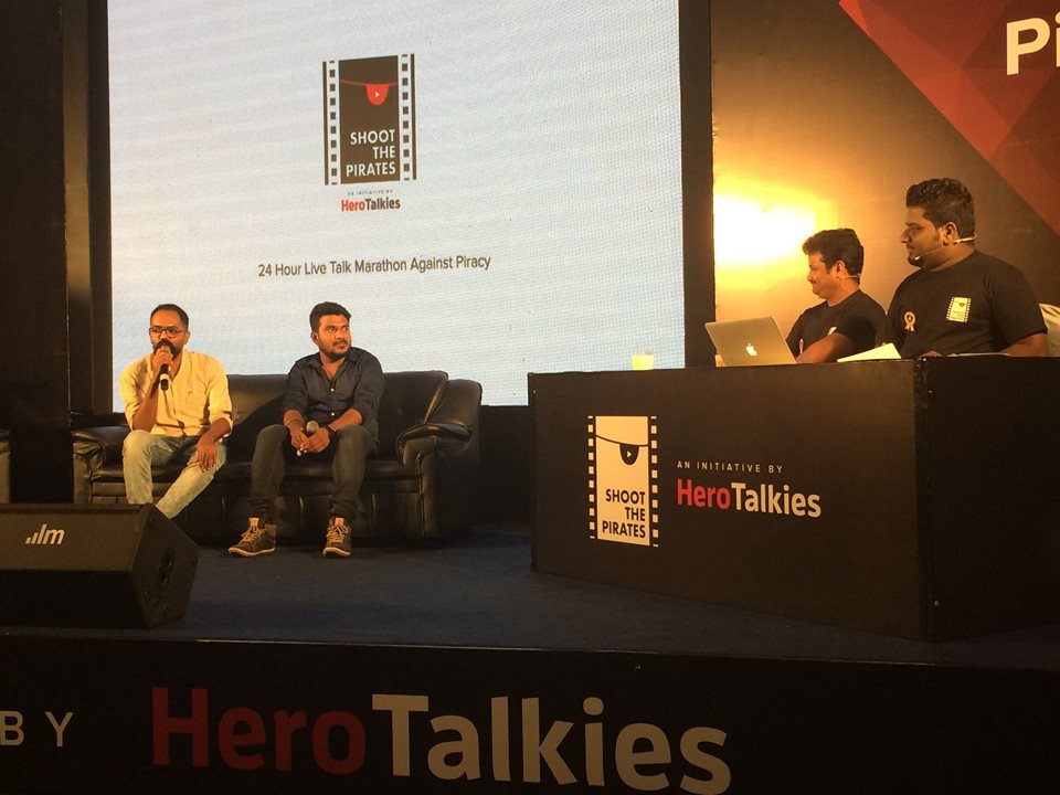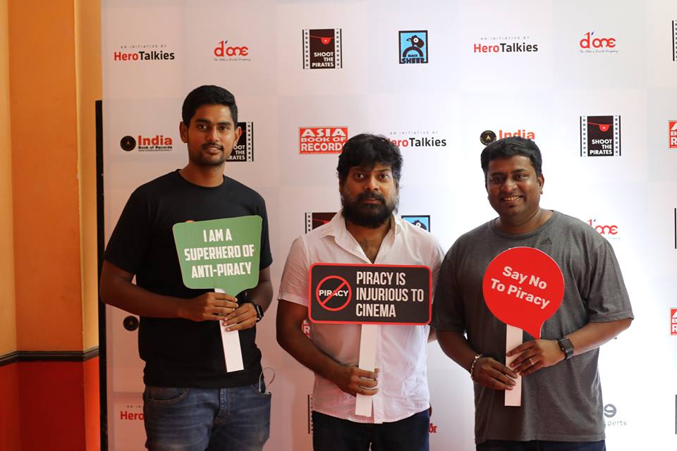 HeroTalkies of Chennai Tamil Nadu, organized the Longest Anti-Piracy Campaign named as ‘Shoot the Pirates’ at 70 mm Screens, Prasad Film Labs, Arunachalam Road, Vadapalani, Chennai, Tamil Nadu, starting at 1:35 p.m. on September 15 & ending at 1:36 p.m. on 16, 2017. The campaign being continuously streamed live online for 24 hours and involved celebrities across the film fraternity.