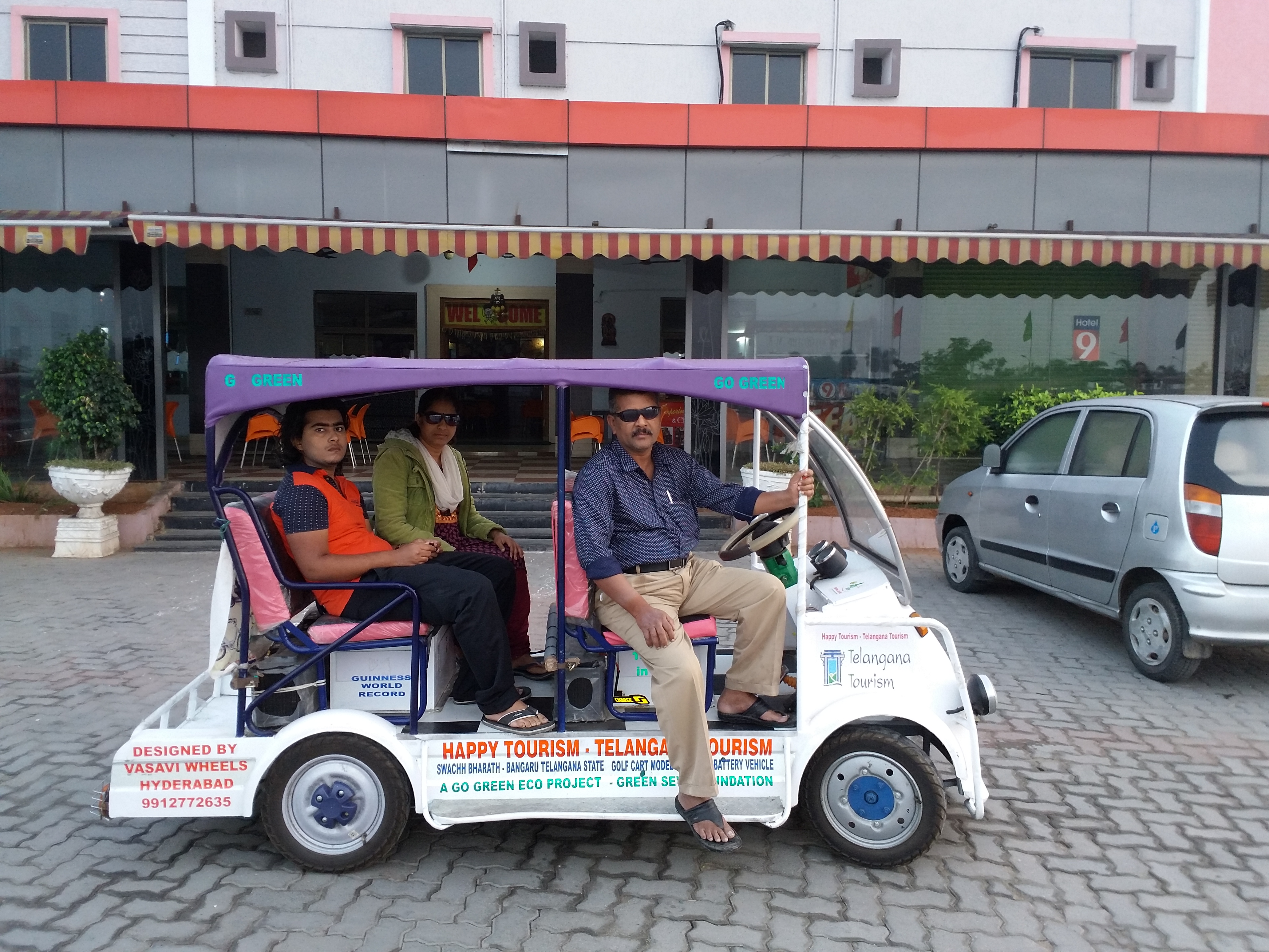 M. V. Krishna Reddy (born on January 2, 1964) along with his wife M. Vanaja and son M. Vamshi Krishna Reddy from Mahbubnagar, Telangana, India, completed 1,665.138km distance on golf cart, starting from Hyderabad, on January 14, 2017 and returning back to Hyderabad, on January 22, 2017.