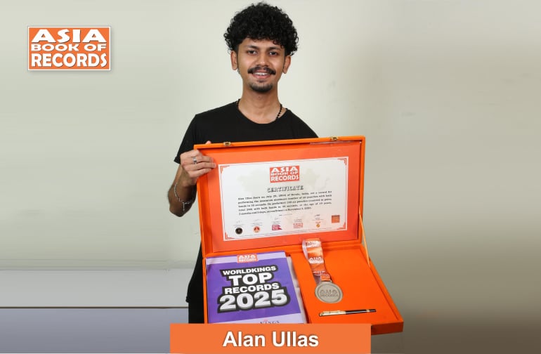 in 30 seconds was set by Alan Ullas (born on July 29, 2004) of Ernakulam, Kerala. He performed 120 air punches (counted in pairs; total 240) with both hands in 30 seconds, at the age of 19 years, 3 months and 5 days, as confirmed on November 3, 2023.