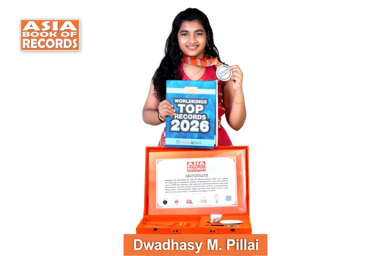Dwadhasy M. Pillai (born on June 24, 2014) of Kerala, India, set a record for collecting the maximum number of denomination coins and currency notes of different countries. She collected 1,056 denomination coins from 66 countries, and 223 currency notes from 54 countries, including Russia, Saudi Arabia, United Kingdom, Japan and India, from 2023 to date, at the age of 11 years and 14 days, as confirmed on August 12, 2025.