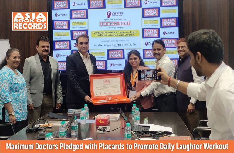Zuventus Healthcare Ltd, in partnership with Spirant Communication Pvt Ltd, set a record for ‘Maximum Doctors Pledged with Placards to Promote Daily Laughter Workout’. A total of 5,274 doctors came together to set a record by holding a placard to promote daily laughter workout. The initiative’s objective was to make people aware of the importance of laughter in leading a healthy life, as confirmed on August 29, 2025.