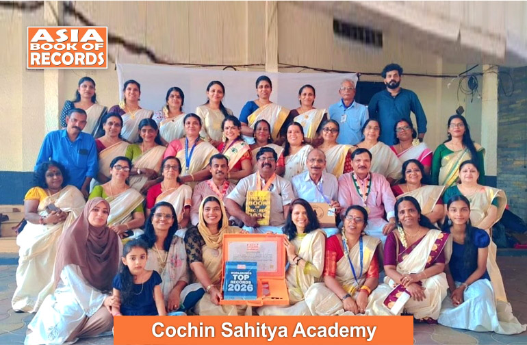 Cochin Sahitya Academy of Kerala, India, set a record for the maximum participation of Malayalam poets at the National Poet Meet 2025. A total number of 210 Malayalam poets participated in the 3rd National Poet Meet 2025 (KaavyaMamankam) at Palluruthy Sree Venkatachalapathy Devaswam U. P. School Hall, Kochi, on December 21, 2025, as confirmed on January 7, 2026.