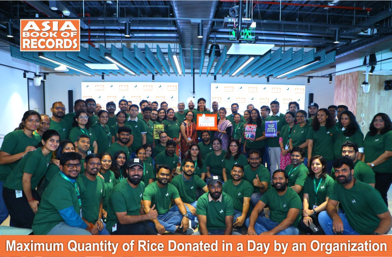 Lloyds Offshore Global Services Pvt Ltd, Hyderabad, India, (a member entity of Lloyds Banking Group), set a record for donating the ‘Maximum Quantity of Rice Donated in a Day by an Organization’. The company donated a total of 1,00400 kg of rice to multiple NGOs across the city. This initiative reflects their deep commitment to support vulnerable communities by addressing hunger and nutritional needs. The objective of this campaign was to raise awareness about food insecurity and to encourage collective efforts towards sustainable community development, as confirmed on November 6, 2025.